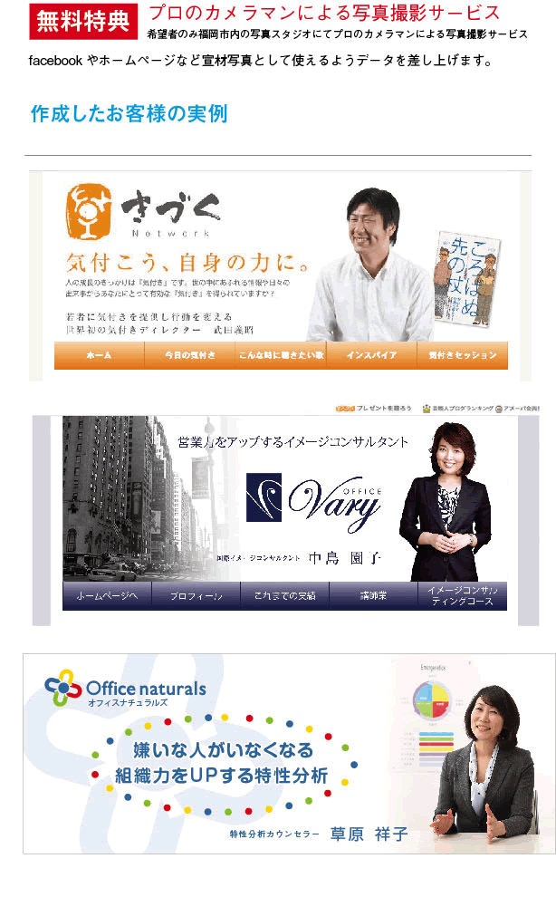 今や高額なお金をかけてホームページを作る時代ではありません。ホームページは自分で作り、自分で更新できる仕組みを作らなければ経費ばかりかかってしまうのが現状です。 最近はアメブロなどで、簡単にカスタマイズしてホームページ風に作ることも可能になってきました。今後は益々進化して、もっと使 いやすいようになってくると思います。そこでここだけはデザインしておきたい部分が“ヘッダー”の部分なのです。“ヘッダー”さえきちんとデザインできていれば、あなたのオリジナルホームペー ジに見えてくるものです。そして、ホームページと比べ圧倒的に読者も多く、人とのつながりが増えるのもブログやフェイスブックの特徴です。